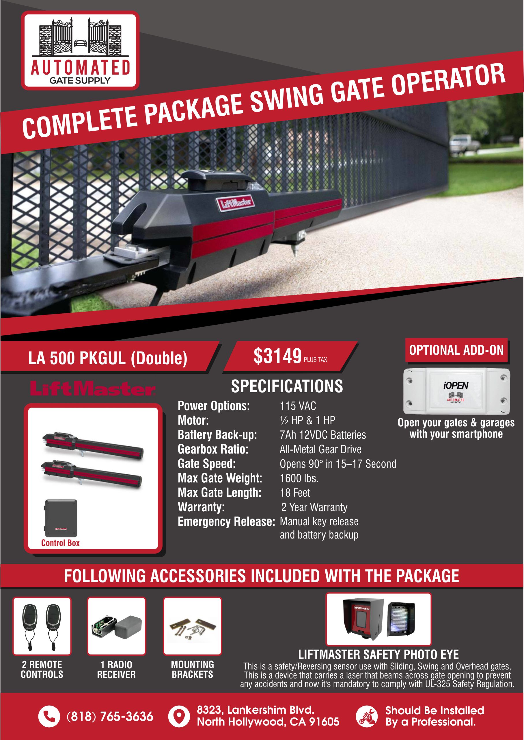 Liftmaster LA500UL Dual Swing Gate Opener – S…
